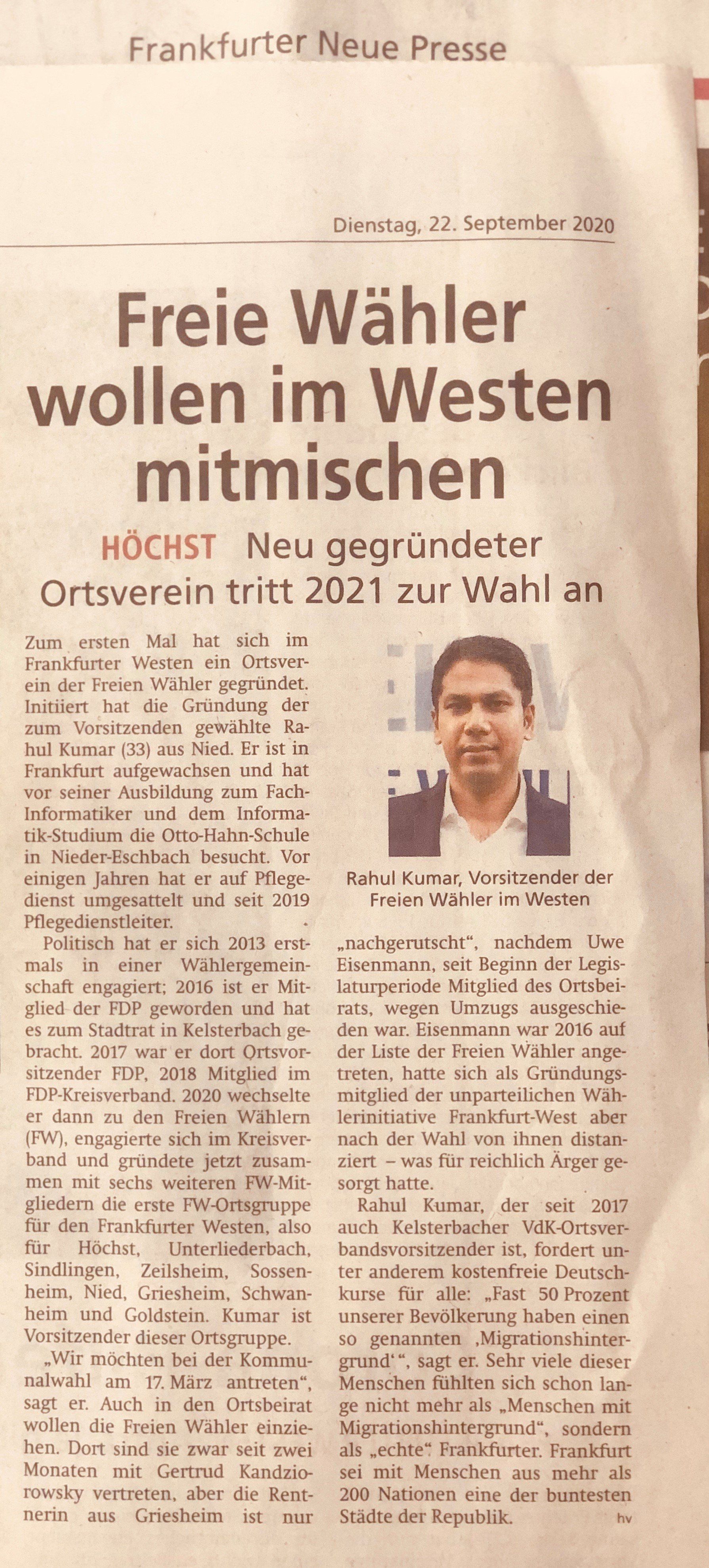2021 Mitglied im Parlament der Stadt Frankfurt a.M