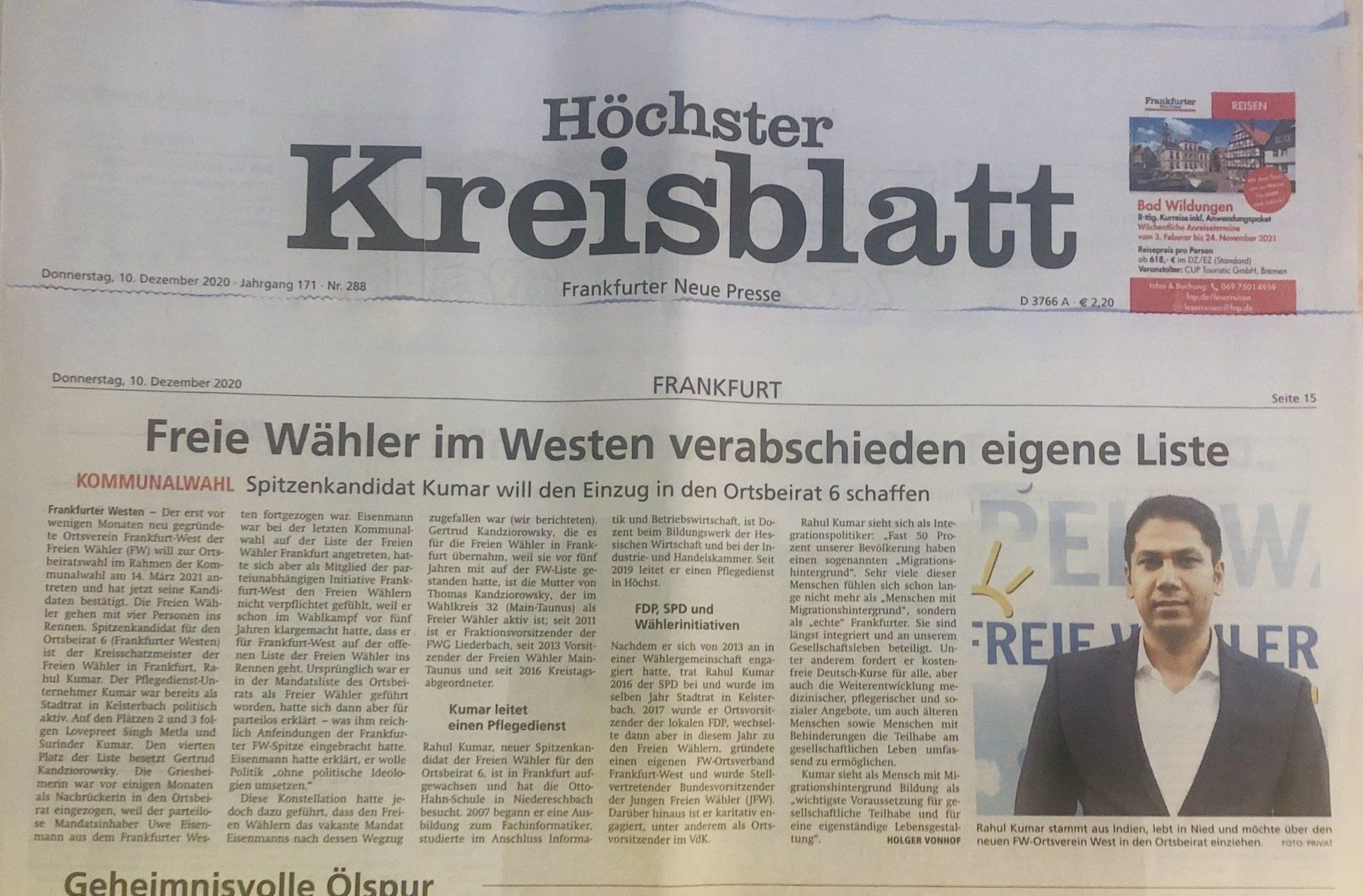 2021 Mitglied im Parlament der Stadt Frankfurt a.M