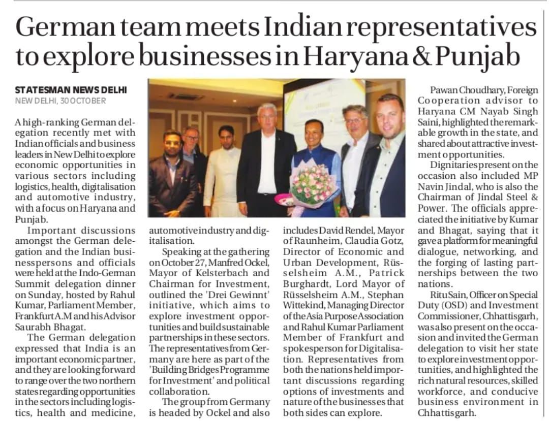 - Eine starke Wirtschaft ist das Rückgrat unseres Wohlstands. Deshalb setze ich mich dafür ein, dass Frankfurt und Deutschland wirtschaftlich stark bleiben und zugleich neue Chancen im internationalen Austausch nutzen. Besonders die Zusammenarbeit zwischen Indien und Deutschland bietet enormes Potenzial: von Innovation und Handel bis hin zu gemeinsamen Projekten auf Länderebene. Von diesem Austausch profitieren beide Seiten – wirtschaftlich, kulturell und diplomatisch. Ich unterstütze Investoren und Unternehmen dabei, sich in beiden Ländern erfolgreich anzusiedeln und stelle die politischen sowie behördlichen Weichen für nachhaltiges Wachstum und stabile Partnerschaften.